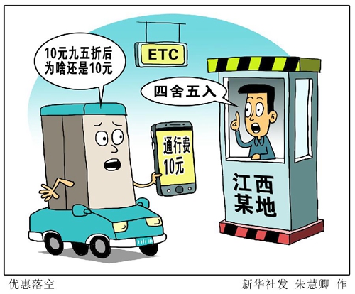 新華社南昌9月8日電(記者李美娟)為積極推動ETC安裝使用,為取消高速公路省界收費站創(chuàng)造條件,交通運輸部今年5月印發(fā)《關(guān)于大力推動高速公路ETC發(fā)展應(yīng)用工作的通知》,明確要求自2019年7月1日起,嚴(yán)格落實對ETC用戶不少于5%的車輛通行費基本優(yōu)惠政策。但在江西,ETC用戶10元通行費打完九五折后又被“四舍五入”成10元。國務(wù)院第七督查組日前對這項惠民政策進(jìn)行了實地督查。