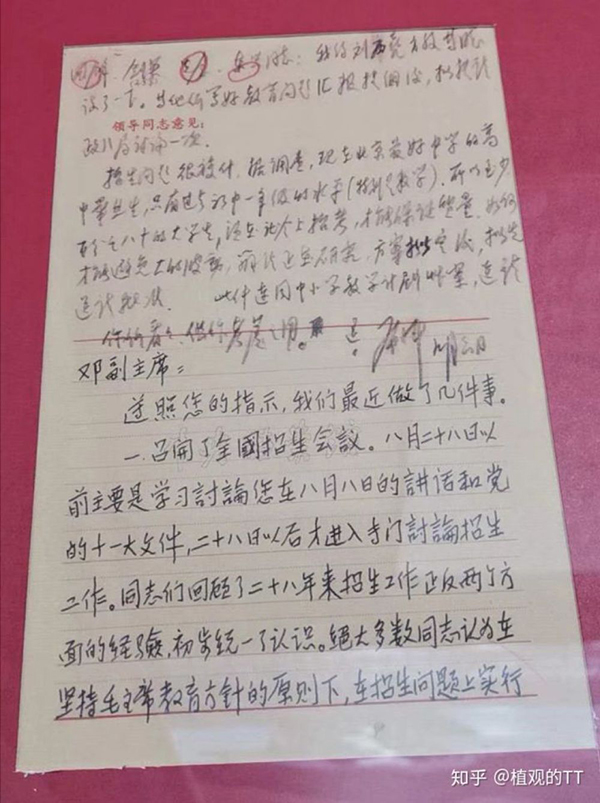 此前擬定的招生辦法為:“自愿報考,單位同意,統(tǒng)一考試,擇優(yōu)錄取”。小平同志大筆一揮,把“單位同意”這條劃掉。