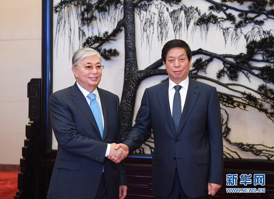 9月12日,全國(guó)人大常委會(huì)委員長(zhǎng)栗戰(zhàn)書(shū)在北京人民大會(huì)堂會(huì)見(jiàn)哈薩克斯坦總統(tǒng)托卡耶夫。新華社記者 申宏 攝