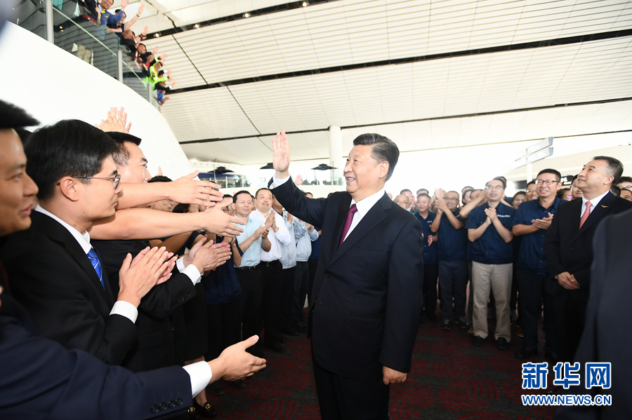 9月25日上午,北京大興國際機場投運儀式在北京舉行。中共中央總書記、國家主席、中央軍委主席習(xí)近平出席儀式,宣布機場正式投運并巡覽航站樓。這是習(xí)近平看望參與機場建設(shè)和運營的工作人員代表,同他們親切交談。 新華社記者 謝環(huán)馳 攝