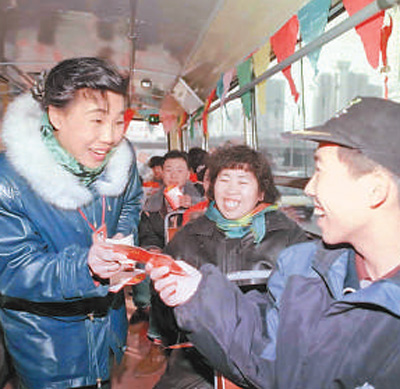“北京有個(gè)李素麗(見圖左一,新華社發(fā)),服務(wù)那可真周到?!睅资赀^去了,公交車售票員李素麗,仍被人們津津樂道。