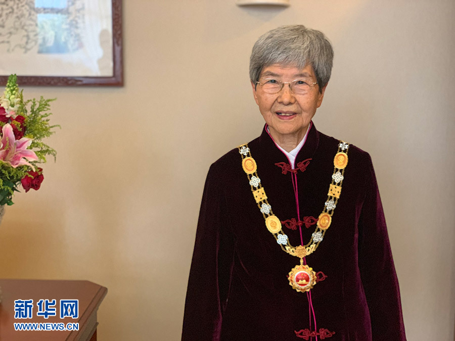 佩戴國家榮譽稱號獎?wù)碌姆\詩(9月29日攝)。新華社發(fā)(敦煌研究院供圖)