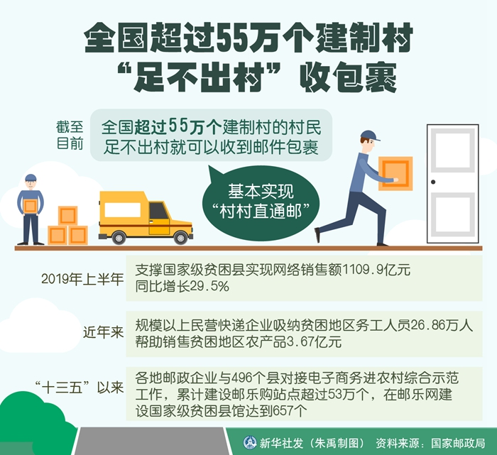 據(jù)統(tǒng)計,今年上半年支撐國家級貧困縣實現(xiàn)網(wǎng)絡銷售額1109.9億元,同比增長29.5%。近年來,規(guī)模以上民營快遞企業(yè)吸納貧困地區(qū)務工人員26.86萬人,幫助銷售貧困地區(qū)農(nóng)產(chǎn)品3.67億元?!笆濉币詠?,各地郵政企業(yè)與496個縣對接電子商務進農(nóng)村綜合示范工作,推動村級郵樂購站點完善布局,不斷向貧困地區(qū)村級延伸,幫扶貧困地區(qū)加強城鄉(xiāng)雙向流通,累計建設郵樂購站點超過53萬個,在郵樂網(wǎng)建設國家級貧困縣館達到657個。