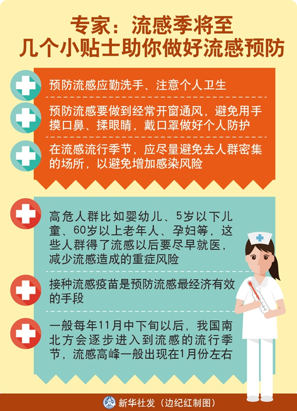 王大燕說,對于公眾來說,預防流感要做到經常開窗通風,避免用手摸口鼻、揉眼睛,因為流感經常是通過手接觸污染物品后傳播的。此外,戴口罩做好個人防護也很重要。