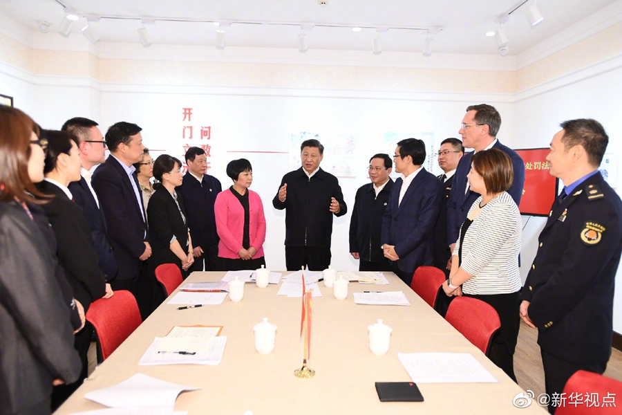 習近平總書記2日在上海市考察調研。當天下午,他來到楊浦區(qū)濱江公共空間楊樹浦水廠濱江段、長寧區(qū)虹橋街道古北市民中心實地考察,了解城市公共空間規(guī)劃建設和社區(qū)治理與服務情況,并同當?shù)鼐用裼H切交談。(文字記者:張曉松 攝影記者:鞠鵬、謝環(huán)馳) ????
