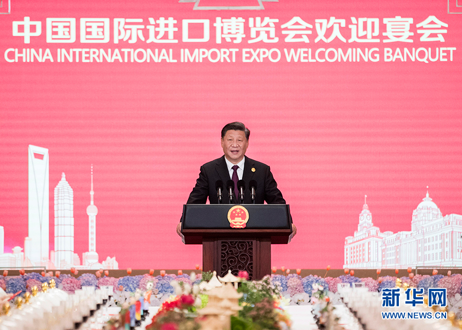 11月4日晚,國家主席習(xí)近平和夫人彭麗媛在上海和平飯店舉行宴會,歡迎出席第二屆中國國際進(jìn)口博覽會的各國貴賓。這是習(xí)近平發(fā)表致辭。 新華社記者 王曄 攝