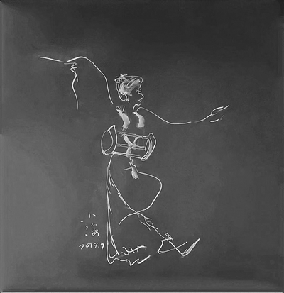 揚(yáng)子晚報(bào)記者注意到,這些用“數(shù)學(xué)語言”繪成的粉筆畫,有修長(zhǎng)的女子,有年邁的老人,有頑皮的孩童,有淘氣的小貓;從動(dòng)作上看,有的在遠(yuǎn)望,有的在賞花,有的在舞蹈,有的在拉琴,有的在采摘,有的在打球,有的在觀察小蟲;從色彩上看,有的只有白色或粉紅色一種顏色,有的有兩種顏色,但不超過三種顏色。無論是一種顏色還是有限的兩三種顏色,作品都生動(dòng)傳神,幾條柔和的曲線稍作組合,寥寥數(shù)筆,就賦予了作品生命力,顯示了作者嫻熟高超的繪畫技巧。每幅畫的角落,有的還寫上了“童趣”、“采摘”、“風(fēng)雨歸來”、“運(yùn)動(dòng)美”的標(biāo)題,每一幅畫都署名“小?!保袝煮w也和畫面一樣流暢靈動(dòng)。年近花甲的朱老師以“小”自稱,體現(xiàn)了他率真謙虛的性格和對(duì)工作的態(tài)度。