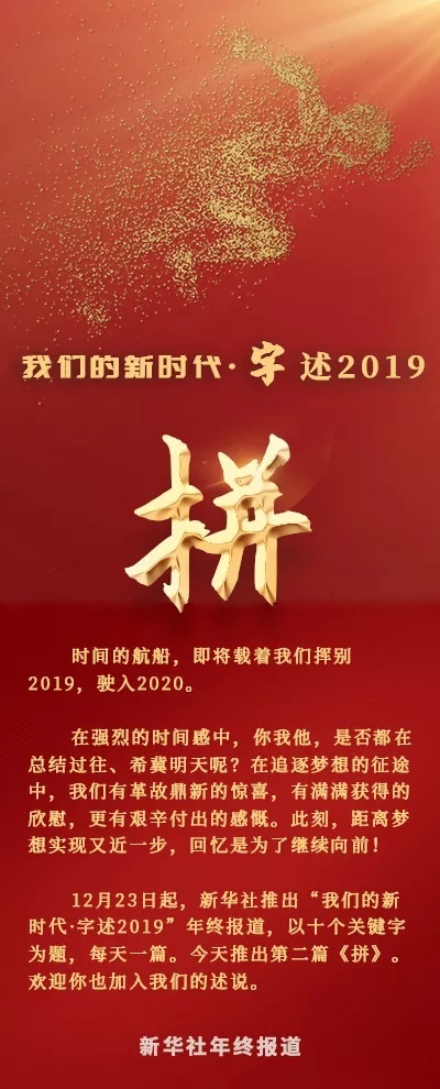 你,我,他,億萬人民敢拼敢干的勁兒,匯聚成中國氣派的時代洪流。“拼”向未來,“拼”向夢想,讓我們書寫屬于祖國、也屬于自己的奮斗篇章。