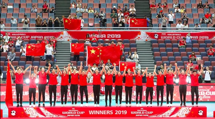 中國女排又一次登上世界冠軍領(lǐng)獎臺。在新中國成立70周年前夕,喜訊傳來,舉國振奮?!白鎳辽?、團(tuán)結(jié)協(xié)作、頑強(qiáng)拼搏、永不言敗”,女排精神代表著一個時代的精神,喊出了為中華崛起而拼搏的時代最強(qiáng)音。