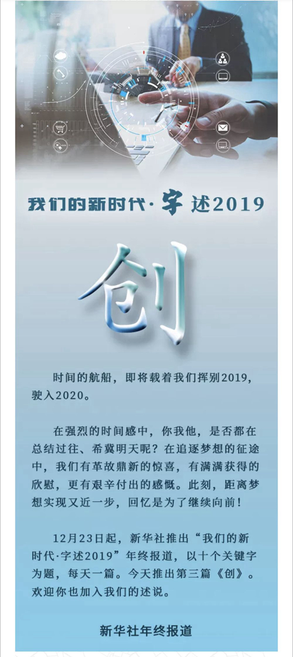 鴻蒙初辟,天地始開。不經(jīng)一番篳路藍(lán)縷,哪來春華秋實(shí)?不信你看,創(chuàng)新路上,載人航天再飛天,大興機(jī)場始展翅,國產(chǎn)航母初入列……2019一個(gè)個(gè)“中國創(chuàng)造”,向世人展示大國創(chuàng)新的萬千氣象!