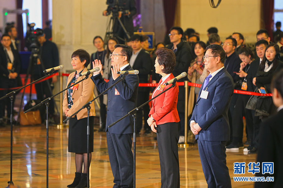 全國政協(xié)十三屆二次會議于3月3日下午3時在北京人民大會堂開幕。新華網(wǎng)、中國政府網(wǎng)進行現(xiàn)場直播。圖為全國政協(xié)委員接受采訪。新華網(wǎng)/中國政府網(wǎng)?劉廈 攝