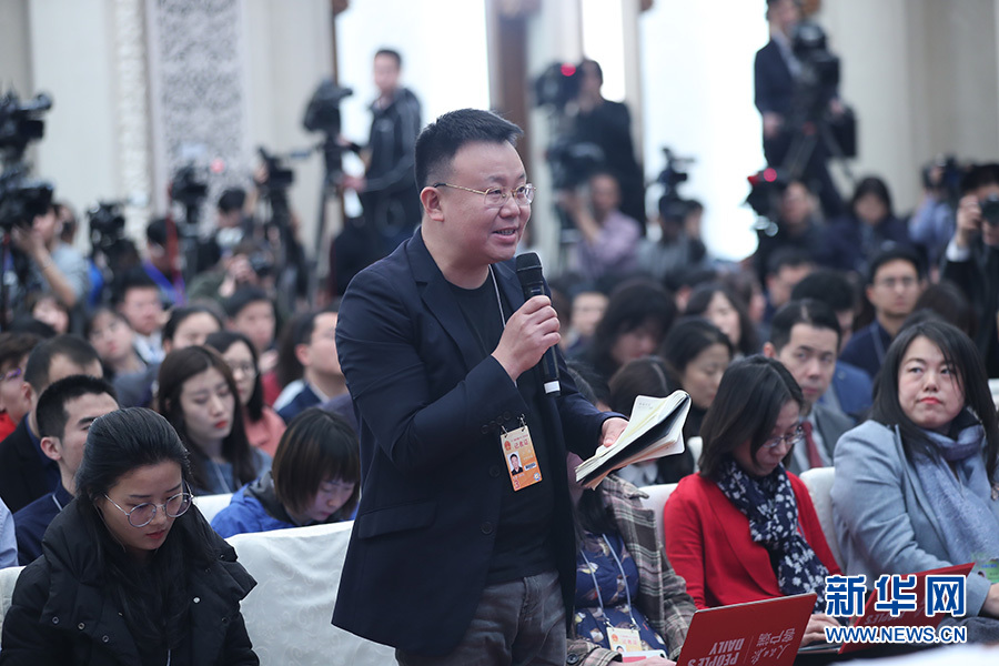 十三屆全國人大二次會議3月4日上午11時15分在人民大會堂新聞發(fā)布廳舉行新聞發(fā)布會,由大會發(fā)言人就大會議程和人大工作相關的問題回答中外記者提問。圖為封面新聞記者提問。新華網(wǎng)/中國政府網(wǎng) 陳杰 攝
