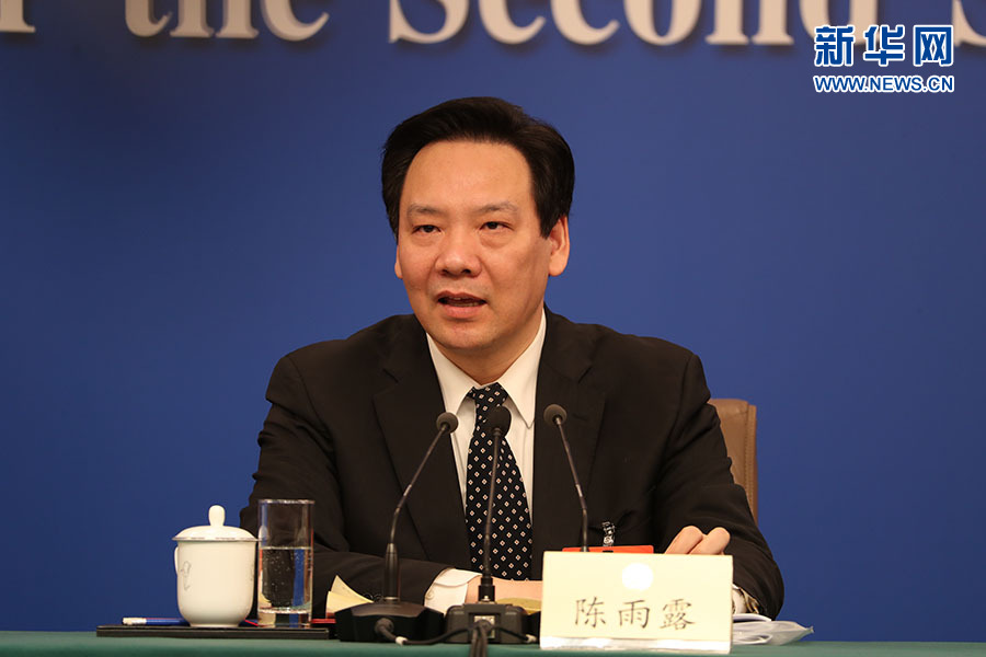 全國政協(xié)十三屆二次會議3月5日下午在梅地亞兩會新聞中心舉行記者會,邀請5位全國政協(xié)委員就“打贏防范化解重大風(fēng)險、精準(zhǔn)脫貧、污染防治三大攻堅戰(zhàn)”回答記者提問。圖為全國政協(xié)經(jīng)濟(jì)委員會副主任(經(jīng)濟(jì)界)、中國人民銀行副行長陳雨露。新華網(wǎng)/中國政府網(wǎng) 陳杰 攝