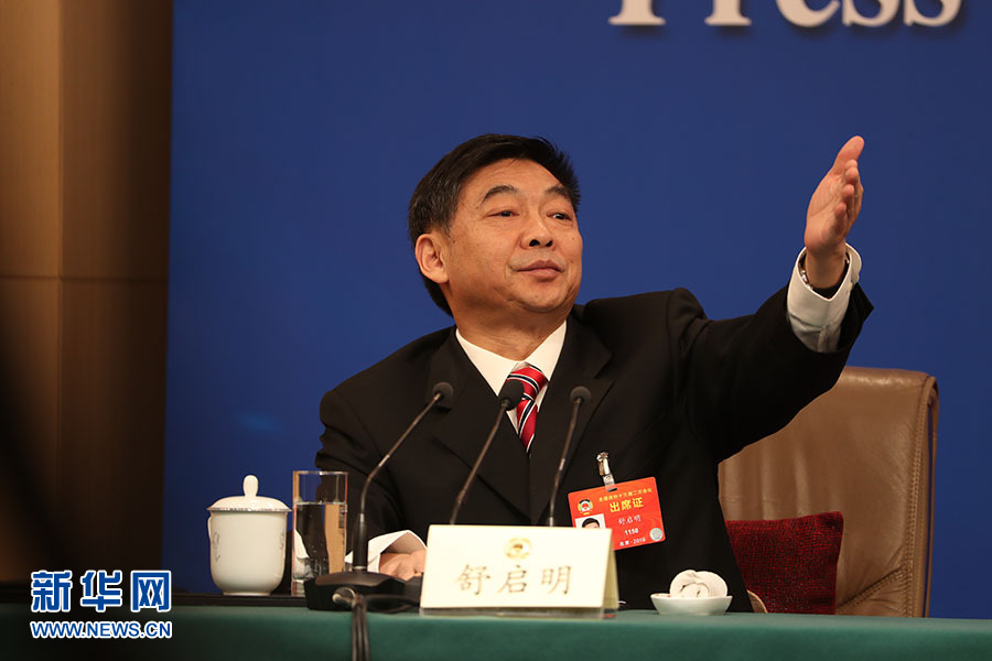 全國政協(xié)十三屆二次會議3月5日15:00在梅地亞中心多功能廳舉行記者會,邀請5位全國政協(xié)委員就“打贏防范化解重大風(fēng)險、精準(zhǔn)脫貧、污染防治三大攻堅(jiān)戰(zhàn)”回答記者提問。圖為主持人舒啟明。新華網(wǎng)/中國政府網(wǎng) 陳杰 攝