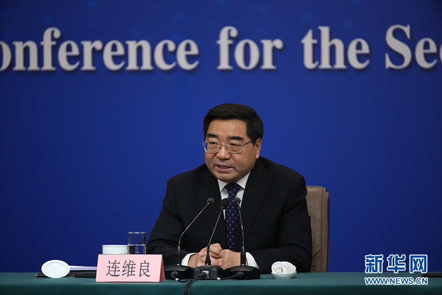 十三屆全國人大二次會議新聞中心于3月6日(星期三)上午10時在梅地亞中心新聞發(fā)布廳舉行記者會,邀請國家發(fā)展改革委主任何立峰,副主任寧吉喆、連維良就“大力推動經(jīng)濟(jì)高質(zhì)量發(fā)展”相關(guān)問題回答中外記者的提問。圖為連維良回答記者提問。新華網(wǎng)/中國政府網(wǎng) 劉廈 攝