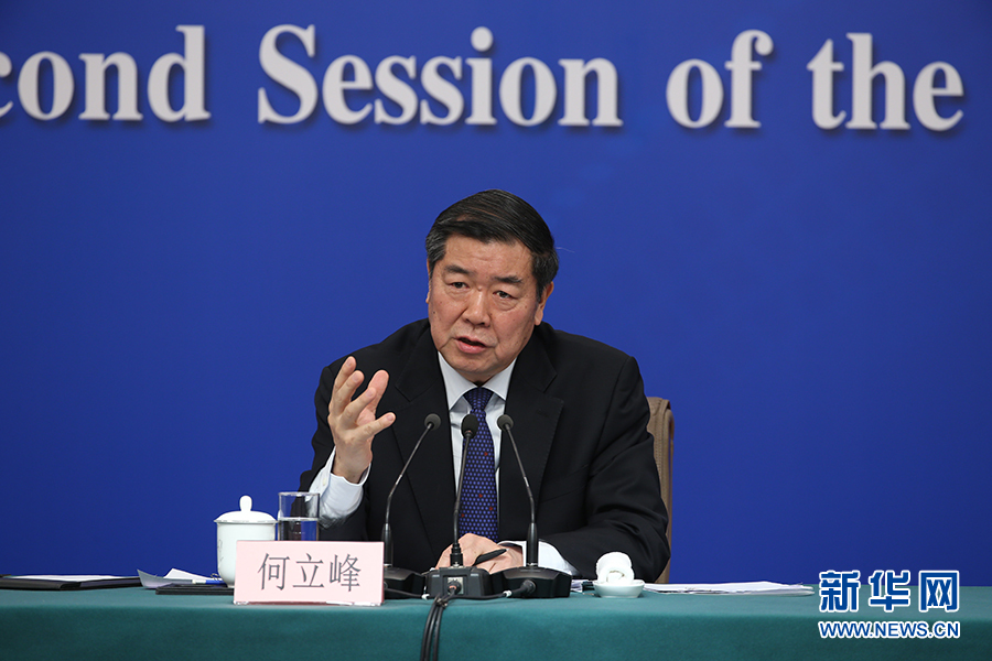 十三屆全國人大二次會議新聞中心于3月6日(星期三)上午10時在梅地亞中心新聞發(fā)布廳舉行記者會,邀請國家發(fā)展改革委主任何立峰,副主任寧吉喆、連維良就“大力推動經(jīng)濟(jì)高質(zhì)量發(fā)展”相關(guān)問題回答中外記者的提問。圖為何立峰。新華網(wǎng)/中國政府網(wǎng) 劉廈 攝