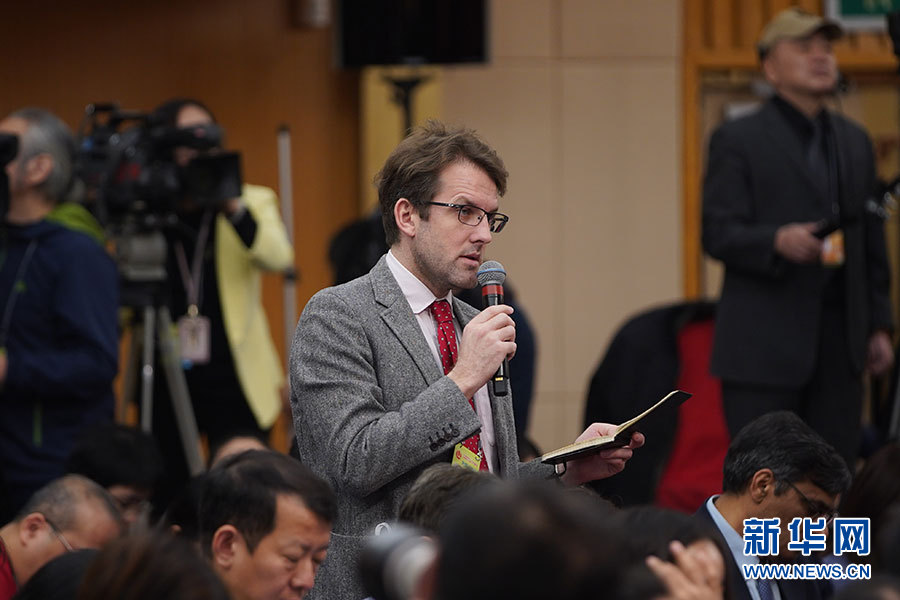 ????十三屆全國(guó)人大二次會(huì)議新聞中心3月7日9時(shí)在梅地亞中心新聞發(fā)布廳舉行記者會(huì),邀請(qǐng)財(cái)政部部長(zhǎng)劉昆,副部長(zhǎng)程麗華、劉偉就“財(cái)稅改革和財(cái)政工作”相關(guān)問題回答中外記者提問。圖為彭博新聞社記者提問。新華網(wǎng)/中國(guó)政府網(wǎng) 劉廈 攝