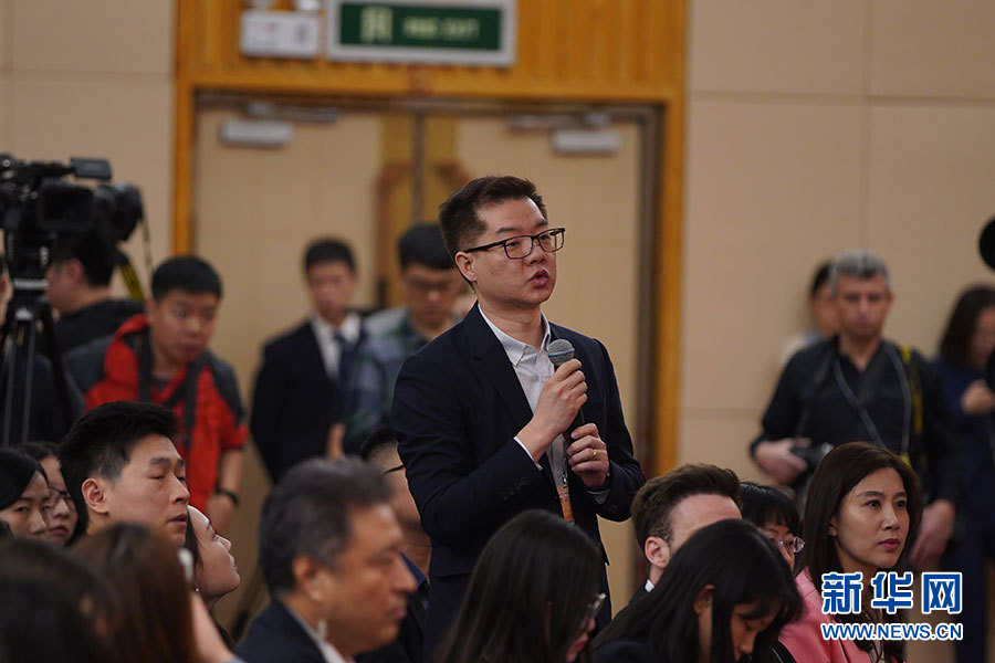 ????十三屆全國人大二次會議新聞中心3月7日9時在梅地亞中心新聞發(fā)布廳舉行記者會,邀請財政部部長劉昆,副部長程麗華、劉偉就“財稅改革和財政工作”相關(guān)問題回答中外記者提問。圖為中央廣播電視總臺央視記者提問。新華網(wǎng)/中國政府網(wǎng) 劉廈 攝