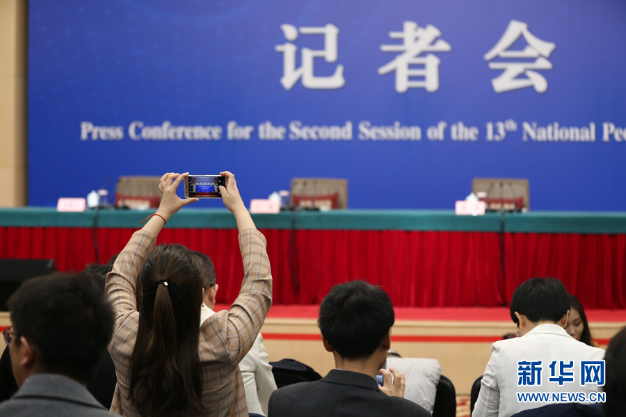 十三屆全國(guó)人大二次會(huì)議新聞中心3月8日10時(shí)在梅地亞中心新聞發(fā)布廳舉行記者會(huì),邀請(qǐng)國(guó)務(wù)委員兼外交部長(zhǎng)王毅就“中國(guó)外交政策和對(duì)外關(guān)系”相關(guān)問題回答中外記者提問。圖為記者在現(xiàn)場(chǎng)準(zhǔn)備。新華網(wǎng)/中國(guó)政府網(wǎng) 劉廈 攝