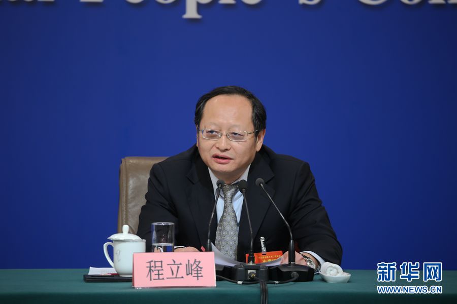 十三屆全國人大二次會議新聞中心3月9日在梅地亞中心新聞發(fā)布廳舉行記者會,邀請全國人大農(nóng)業(yè)與農(nóng)村委員會主任委員陳錫文、全國人大財政經(jīng)濟委員會副主任委員烏日圖、全國人大常委會法制工作委員會副主任劉俊臣、全國人大常委會法制工作委員會副主任許安標、全國人大環(huán)境與資源保護委員會委員程立峰就“人大立法工作”相關(guān)問題回答記者提問。圖為全國人大環(huán)境與資源保護委員會委員程立峰。新華網(wǎng)/中國政府網(wǎng) 劉廈 攝