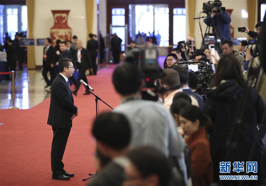 3月12日,十三屆全國(guó)人大二次會(huì)議在北京人民大會(huì)堂舉行第三次全體會(huì)議。這是國(guó)家知識(shí)產(chǎn)權(quán)局局長(zhǎng)申長(zhǎng)雨在“部長(zhǎng)通道”接受采訪。 新華社記者金立旺攝
