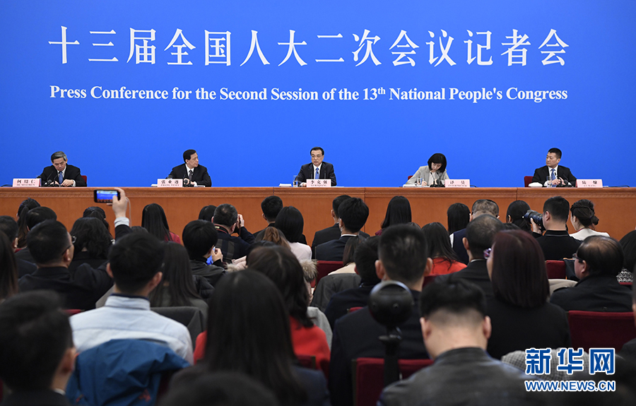 3月15日,十三屆全國(guó)人大二次會(huì)議在北京人民大會(huì)堂舉行記者會(huì),國(guó)務(wù)院總理李克強(qiáng)應(yīng)大會(huì)發(fā)言人張業(yè)遂的邀請(qǐng)會(huì)見中外記者,并回答記者提問。 新華社記者 申宏 攝