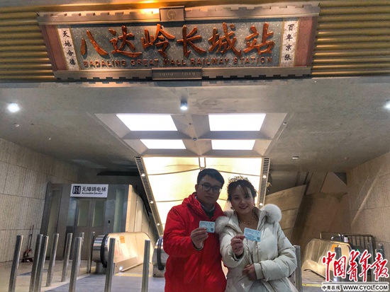 最后檢查完八達(dá)嶺長(zhǎng)城站的防撞條、電梯等細(xì)節(jié)后,手機(jī)屏幕的時(shí)鐘跳到了深夜1點(diǎn),32歲的胡維急忙趕回不遠(yuǎn)處的員工宿舍。那里,妻子肖雅萍正在屋里試婚紗。