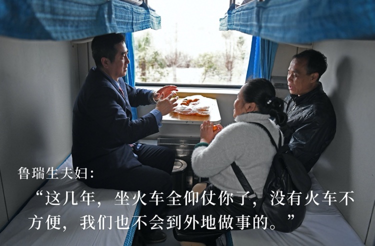 火車上,列車長專門給他們安排了個(gè)臥鋪空位。車廂里三個(gè)人聊起了家常,不知不覺火車駛進(jìn)了上饒站。