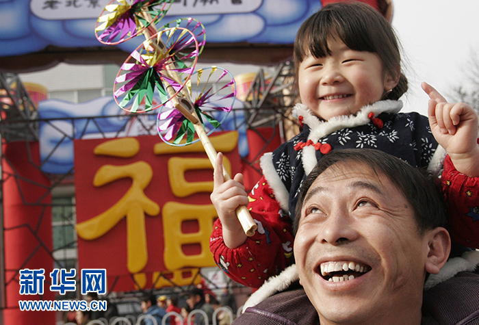 廟會上,風(fēng)車清脆的鼓聲、飛舞的彩輪
