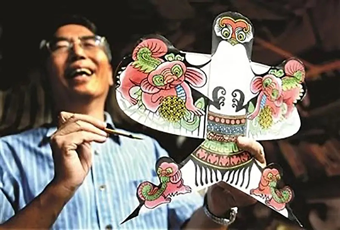 北京人喜愛的沙燕風(fēng)箏從清早期就已成為北京風(fēng)箏的主角。沙燕風(fēng)箏以生活在北京的家燕為原型,這種燕子每到春天飛回北方,象征大地回春,有報喜之意。更有意思的是,沙燕風(fēng)箏的形象由“一家子”組成。肥燕喻男,瘦燕喻女,比翼喻夫妻,雛燕喻娃娃,寓意家庭和睦,闔家團(tuán)圓。