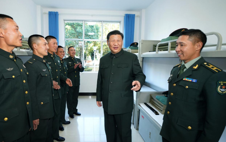 習近平十分牽掛我國邊防一線的守邊官兵。19日下午6時許,他來到駐守在我國西南邊陲的某邊防營視察,問住宿,看營衛(wèi)生所,進食堂……了解戰(zhàn)士們的工作和生活情況。