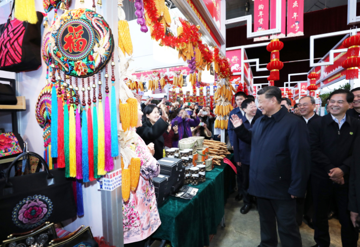 20日下午,習近平在昆明新春購物博覽會年貨街,了解春節(jié)前市場供應(yīng)情況。