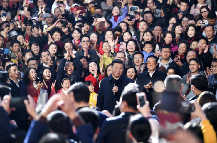 20日下午,習近平在昆明國際會展中心展廳外廣場上,向云南群眾、向全國各族人民、向港澳臺同胞和海外僑胞致以新春祝福。