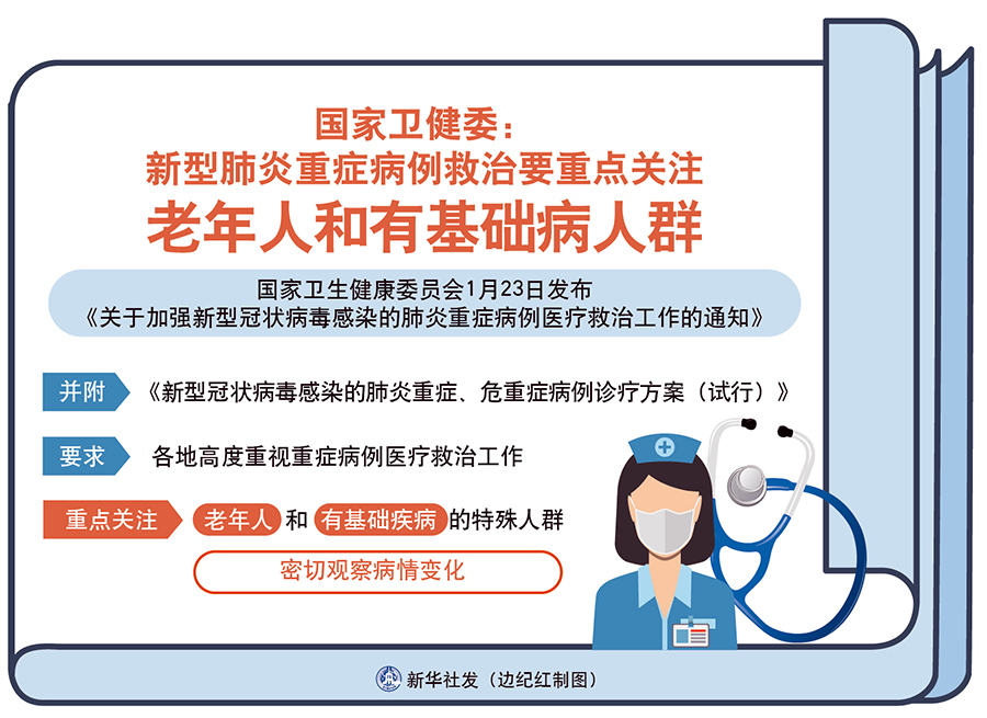 圖表:國家衛(wèi)健委:新型肺炎重癥病例救治要重點(diǎn)關(guān)注老年人和有基礎(chǔ)病人群 新華社發(fā) 邊紀(jì)紅 制圖