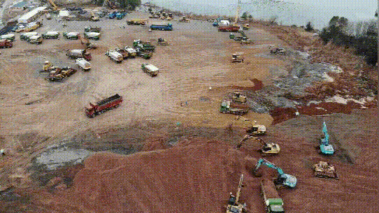 經(jīng)過一天一夜施工,新型冠狀病毒隔離房項(xiàng)目入場(chǎng)挖機(jī)41臺(tái),推土機(jī)15臺(tái),壓路機(jī)4臺(tái),自卸車40臺(tái),327名管理人員和336名工人集結(jié)完畢,累計(jì)平整全部場(chǎng)地9000平方米,內(nèi)轉(zhuǎn)土方2500立方米。