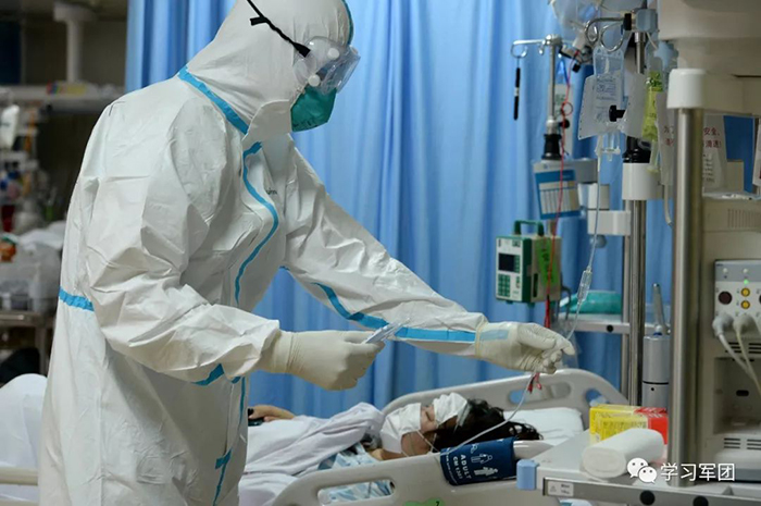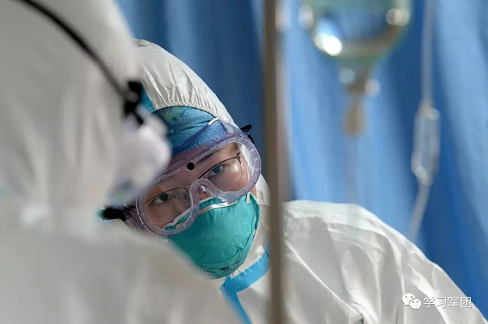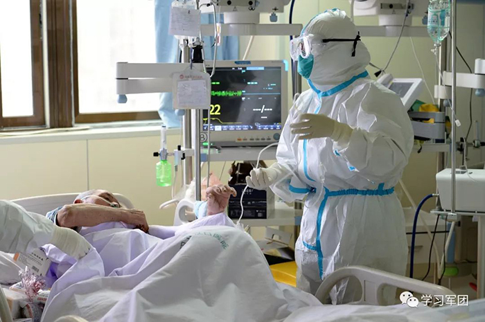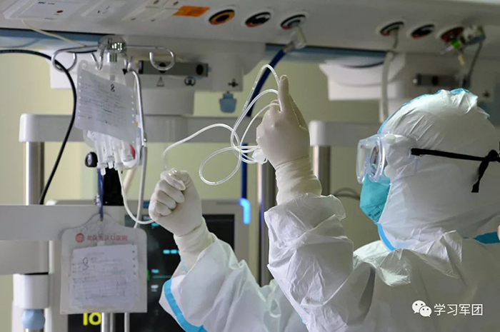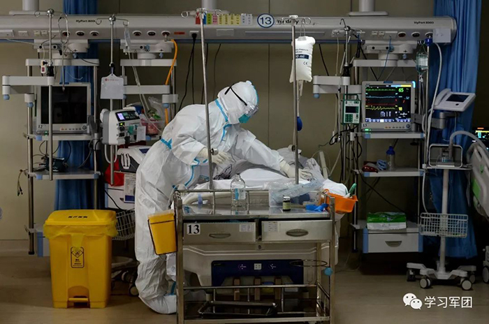 1月27日上午,海軍軍醫(yī)大學醫(yī)療隊醫(yī)護人員在漢口醫(yī)院重癥監(jiān)護室對新型冠狀病毒感染的肺炎患者進行救治。醫(yī)護人員密切關(guān)注患者病情,根據(jù)變化調(diào)整輸液速度。解放軍報記者范顯海攝