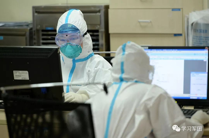 1月27日上午,海軍軍醫(yī)大學醫(yī)療隊醫(yī)護人員在漢口醫(yī)院重癥監(jiān)護室對新型冠狀病毒感染的肺炎患者進行救治。醫(yī)護人員查看檢查結(jié)果,評估患者病情。解放軍報記者范顯海攝