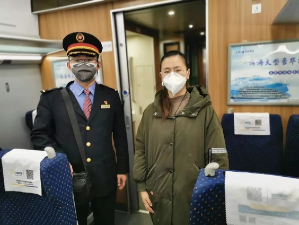 9時54分,D785次列車到達昆明南站,昆明南站的工作人員再次給她測了體溫沒問題后,立即帶她去找昆明南開往南京南的G1540次列車的列車長張峻豪。10時20分,郎冰凝坐上了G1540次列車奔向武漢。