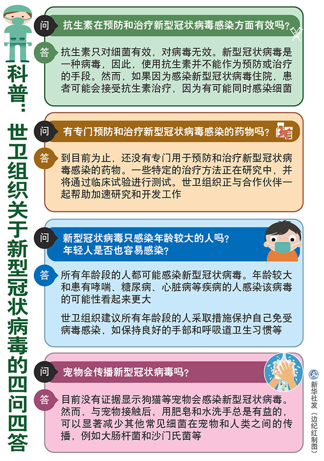 新華社北京2月2日電 面對當前新型冠狀病毒感染肺炎疫情,世界衛(wèi)生組織近日在其官方網(wǎng)站,回答了公眾普遍關(guān)心的“抗生素在預防和治療新型冠狀病毒感染方面有效嗎”等四個問題。新華社記者梳理如下。