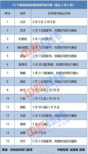 對部分上班族來說,3日是正式復工的第一天。為了減少人員聚集和交叉感染,阻斷疫情傳播,近日北京、天津、石家莊、雄安新區(qū)、邢臺、秦皇島、邯鄲、保定、焦作、開封、洛陽、許昌、晉城、成都、蘭州共15城發(fā)布了暫停機動車尾號限行的措施,減少民眾公共交通出行。