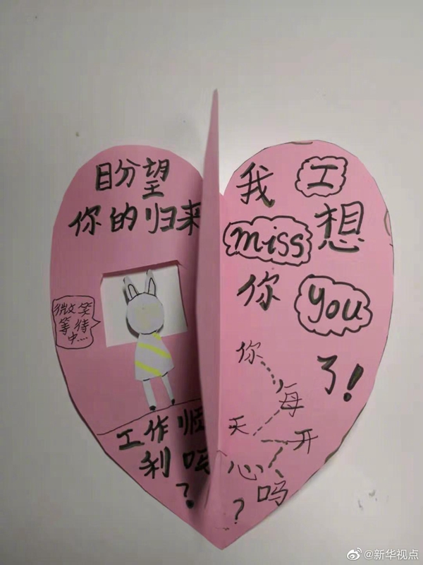 他們是醫(yī)生,是護士,也是爸爸和媽媽。面對疫情,華中科技大學同濟醫(yī)院的醫(yī)生護士們勇敢前行。在孩子們眼里,他們是值得驕傲的爸爸和媽媽。戳圖,看孩子們用自己的方式表達思念和鼓勵。(記者黎昌政、胡喆) ????