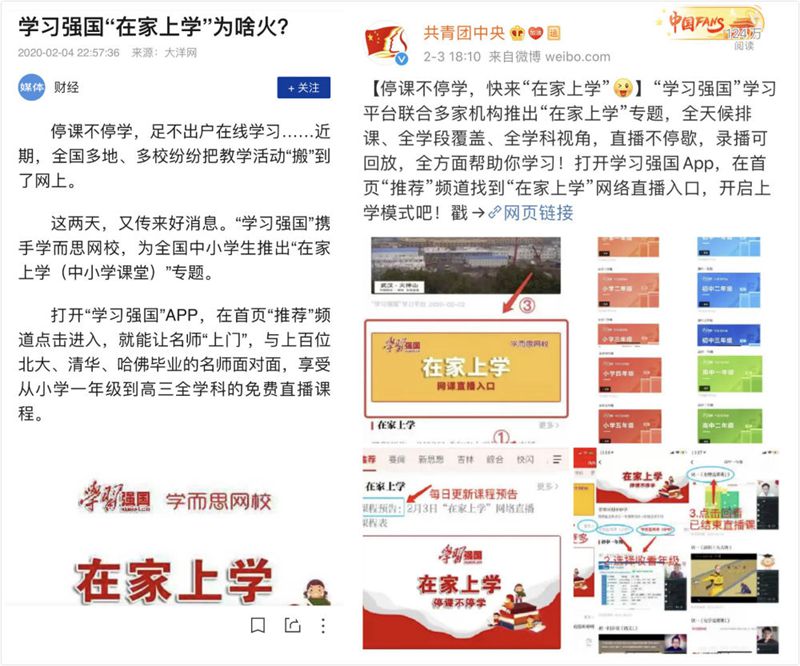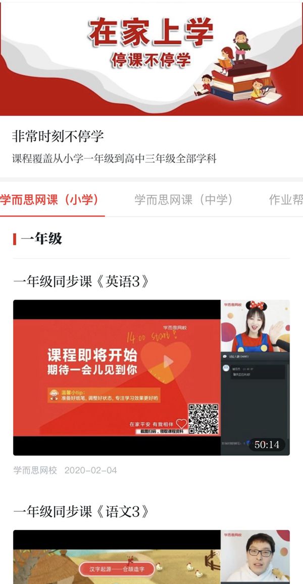 看點2.“在家上學”專區(qū):停課不停學!“學習強國”聯(lián)合“學而思”“新東方”“猿輔導”“作業(yè)幫”“掌門教育”等多家教育機構(gòu),組織上百位北大、清華、哈佛畢業(yè)名師,全國特級教師、家庭教育專家、心理學專家為延期開學的中小學生講課,提供從小學一年級到高中三年級全學科、全時段課程,直播、回看兩不誤,實現(xiàn)“停課不停教”“停課不停學”。此外,還有北京101中學、人大附中、清華附中、成都七中、中關(guān)村小學等中小學名校上千堂部級優(yōu)質(zhì)課程,讓全國各地的孩子們足不出戶就能享受最優(yōu)質(zhì)的教育資源。