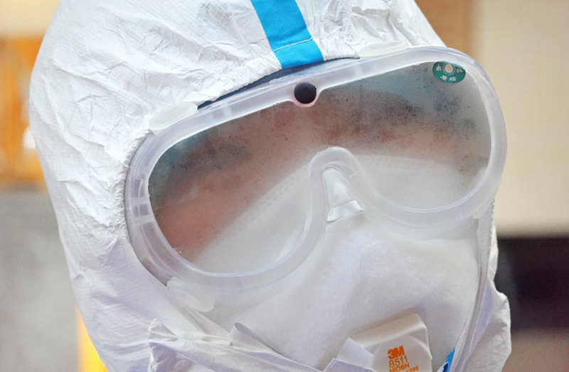 每次出門采訪都如臨大敵:先換好外出的衣裳、戴好醫(yī)用手套、戴好護(hù)目鏡,然后再小心翼翼地在臉上加上一個(gè)或兩個(gè)口罩,在門口換上出門的鞋,最后再背上采訪設(shè)備——每次做完這些的時(shí)候,作為胖子的我身上已經(jīng)開始冒汗并且氣喘吁吁。如果要去醫(yī)院采訪,有時(shí)候還要再穿上一件防護(hù)服。這樣的裝備,出門走一圈其實(shí)已經(jīng)很難受了,而我還要隔著不斷產(chǎn)生霧氣的護(hù)目鏡拍照,要不斷地移動(dòng)、尋找最好的拍攝角度和位置,采訪的時(shí)候更要記下一個(gè)個(gè)口罩后面的名字、故事......這樣的采訪狀態(tài)對(duì)我而言,從未曾經(jīng)歷過——多年前,我曾在利比亞做過戰(zhàn)地記者,也曾被武裝分子用槍指著腦袋,但這次在武漢,我不知道那些危險(xiǎn)的“敵人”究竟藏在何方,也許就在無處不在的空氣里!