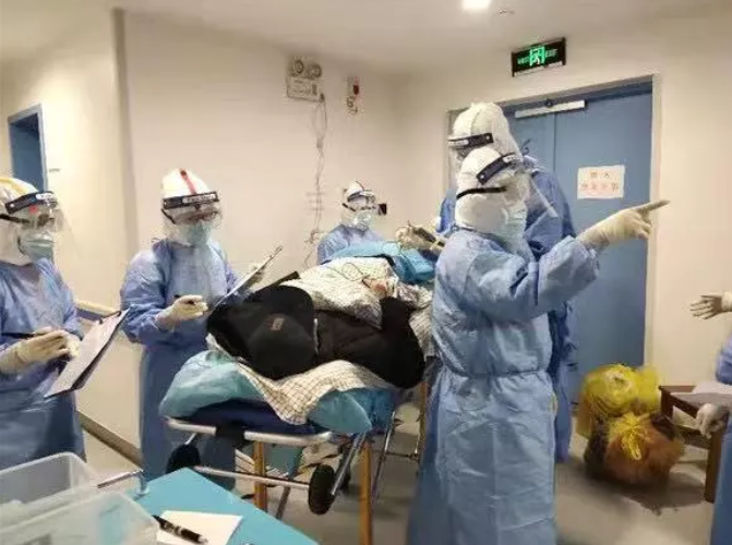 不到19點,大家集合完畢,喬杰院長親自帶隊??焖偈煜ば虏》凯h(huán)境后,全員即刻更換防護(hù)服,喬院長親手給大家的防護(hù)服上寫名字標(biāo)識。20:50左右,第一位患者到達(dá)病房,病人陸續(xù)到來,我們問病史、評估病情、開醫(yī)囑、寫病歷。得益于醫(yī)療隊前期梳理出的工作流程,大大提高了工作效率,6個小時共收治了24位患者,其中危重癥患者3人。大家都說這是“北醫(yī)三院搶救室的Plus版”。