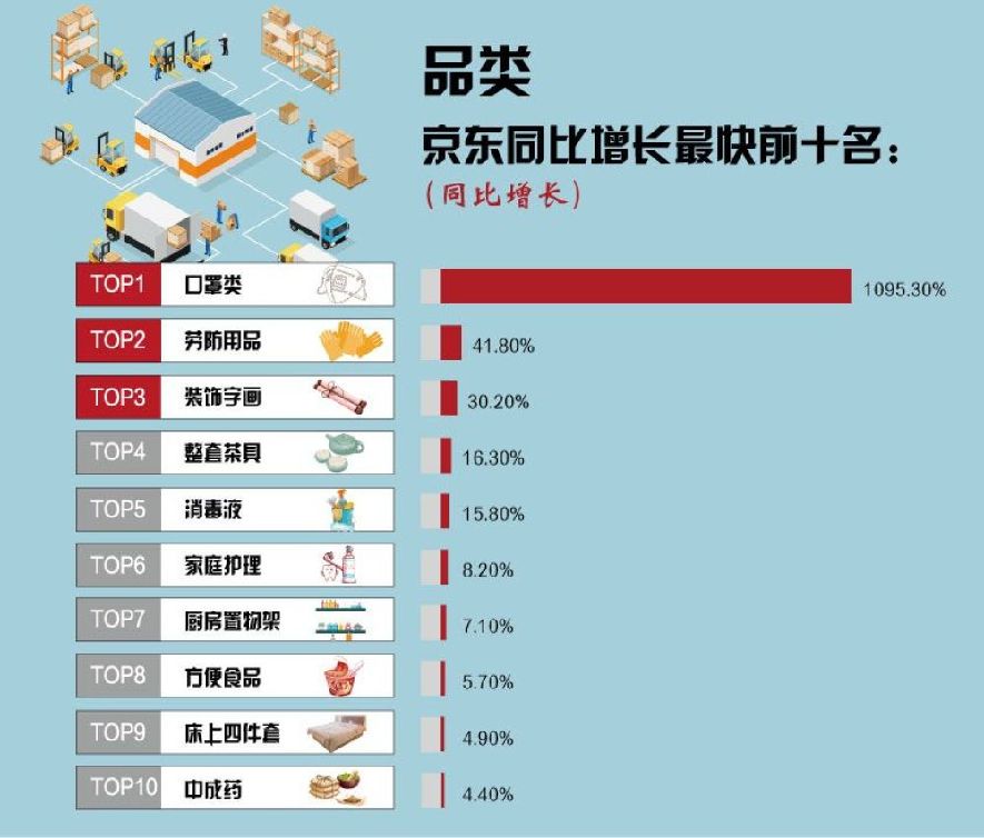 1.口罩、勞防用品、消毒液增速如此之快,這是要成為宅家標(biāo)配嗎?看來小伙伴們已經(jīng)get到了防護(hù)必備技能。
