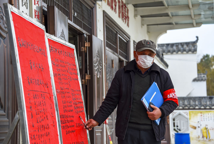 除夕。袁湖村給全體村民免費發(fā)口罩,一人一個。全村有14戶“新香”(按當(dāng)?shù)仫L(fēng)俗,親屬到當(dāng)年去世的人墳前上香)家庭,全部取消“新香”活動。他還要求:“明天大年初一,不要相互拜年,不要串門。”