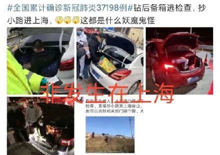 2月8日晚,網(wǎng)上流傳有多張照片,稱上海查獲多起人員藏匿于轎車后備箱以及有人跨越高速公路護欄進入上海金山的情況。