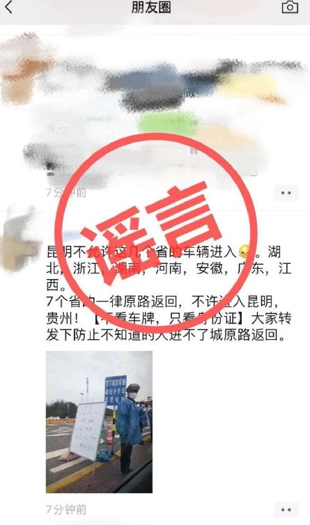 謠言七:湖北、浙江等七省車輛不允許進昆明