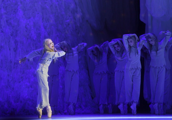 2017年5月19日,日本松山芭蕾舞團(tuán)在北京人民大會堂演出《白毛女》。這是該團(tuán)第15次訪華演出。該團(tuán)團(tuán)長、第二代白毛女扮演者——69歲的森下洋子在劇中飾演“喜兒”。新華社記者金良快攝