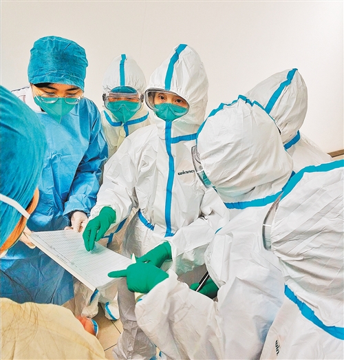 一大早,汪暉就趕到了同濟醫(yī)院中法新城院區(qū),迎接來自山東、河南、山西等地馳援的醫(yī)療隊,給新來的醫(yī)療隊進(jìn)行護(hù)理培訓(xùn),溝通流程,安排護(hù)士排班,一刻不停。奔跑了一上午的汪暉,突然胸痛,找了點藥含下后,喘口氣,又準(zhǔn)備開始工作。如往常每天一樣,她要工作到深夜12點。